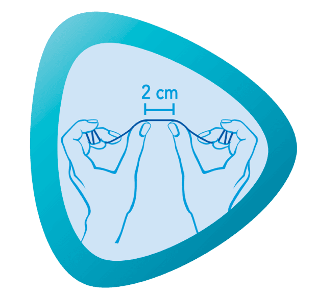 Wikkel de floss om je middelvinger en strek het uit over je duim zodat je 2 cm hebt om te reinigen.